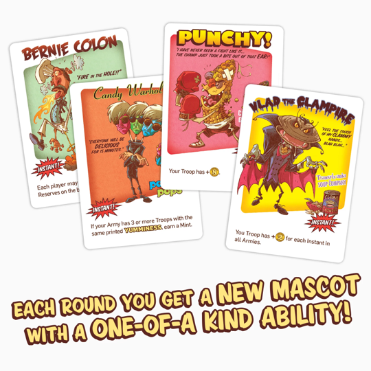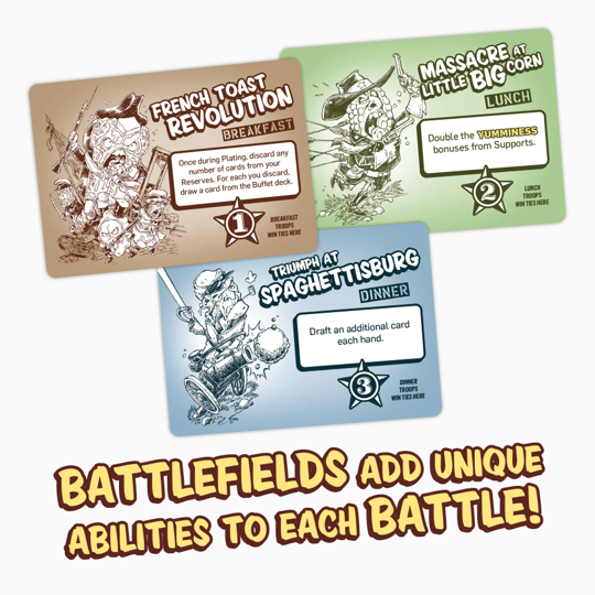 In this Reheated edition of Food Fight, you’ll draft hilarious food Troops and Supports into your army and deploy them Into your army and deploy them onto fresh battlefields. Appease your food god Mascots, and they'll bestow a boon on your war efforts! Who will be the most cunning, the most savage, the most... yummy?! That rumble in the pit of your stomach means you're ready for a FOOD FIGHT!